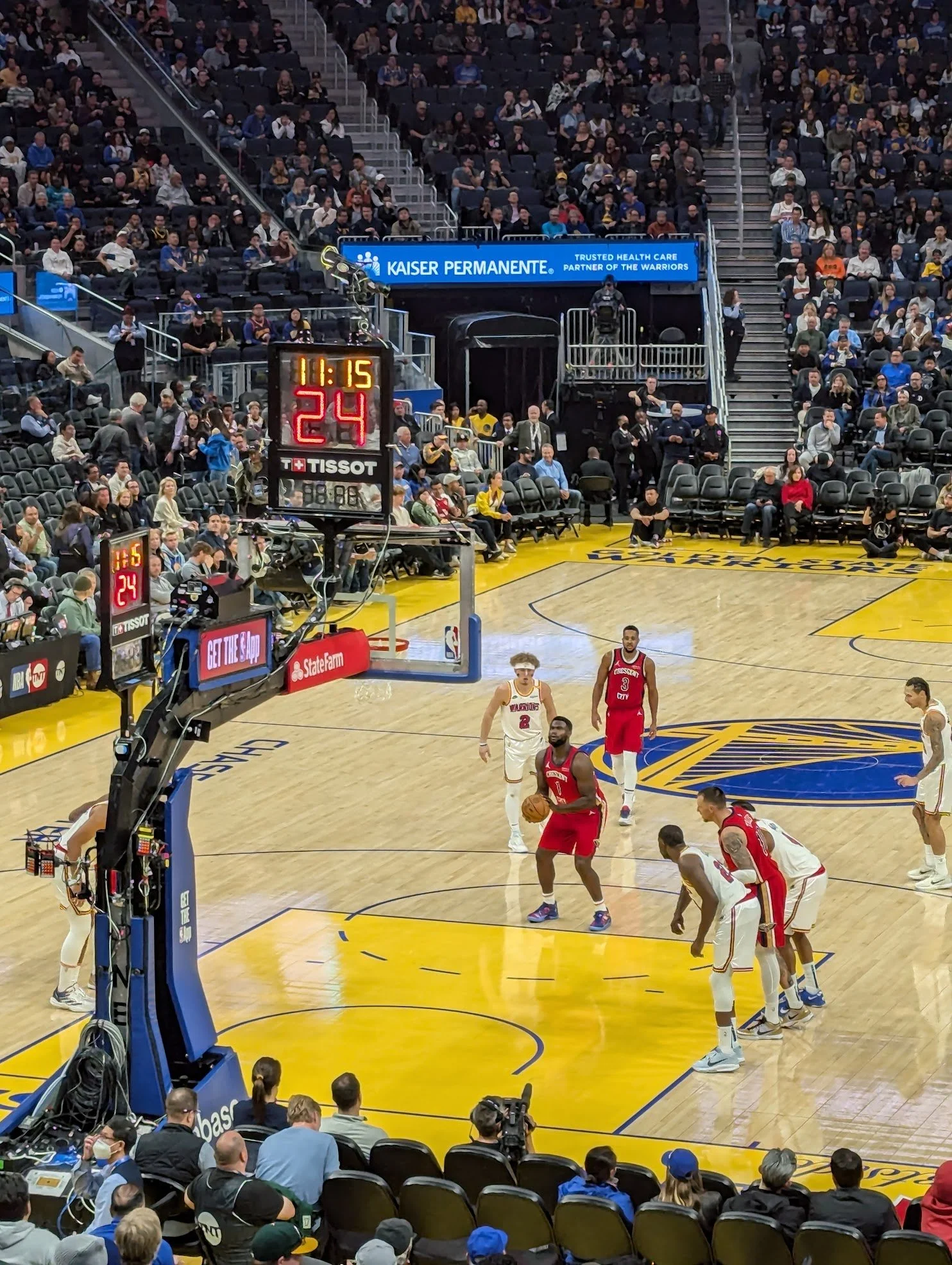 Pictured above: the crowd watching on as Zion Williamson shoots a free throw for the Pelicans